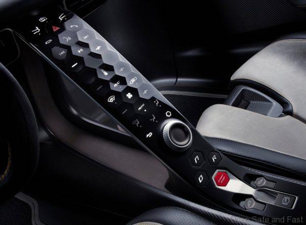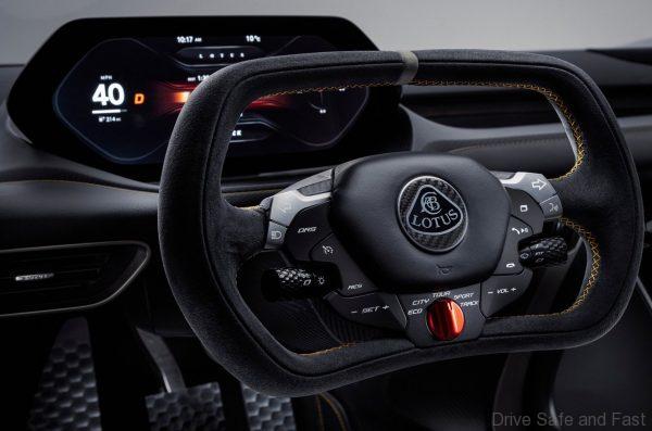 Once in the car, a switch in the roof console closes the doors. The location aids the minimalist layout of the main control panel and prevents them being activated accidentally. Russell Carr, Design Director, Lotus Cars, explained it’s in tribute one of the most iconic Lotus cars, commenting: “Versions of the Lotus Esprit Turbo featured a huge roof console in the late Seventies and early Eighties. It’s not something you might expect on a contemporary hypercar but Lotus fans will love the connection.”
