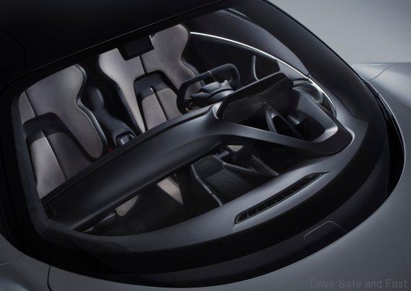 The battery pack is mounted centrally behind the passenger compartment, and its cover is visible through the glass rear screen. This positioning delivers significant advantages in terms of styling, aerodynamics, packaging, weight distribution, occupant comfort and dynamic handling. It also supports fast and convenient servicing and maintenance. Furthermore, the set-up has been designed so that in the future alternative battery packs – for example, to optimise track performance – can be easily installed.