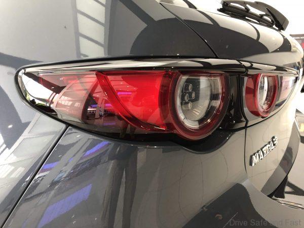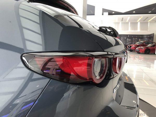 The clean lines and unique proportions of the sporty hatchback convey a sense of anticipation and energy that creates a strong emotional appeal. Powerful C-pillars help to achieve a unique rear design in which the cabin and body appear to form a single solid mass. To achieve the car’s signature look, Mazda eliminated all character lines and relied entirely on beautifully curved body panels which reflect the surrounding environment. The dark metallic colour and bold contouring of the signature wing clearly distinguishes it from the sedan version.