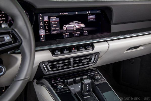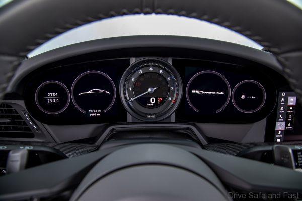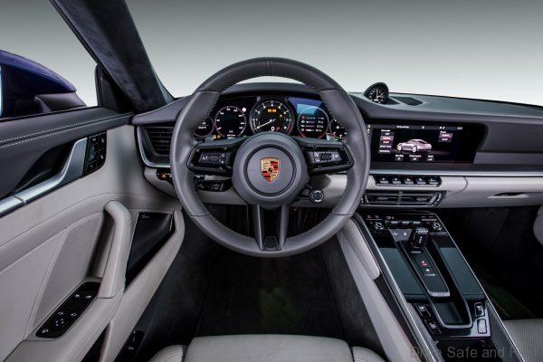 - The dashboard mimics the flat, horizontal layout of the classic 911