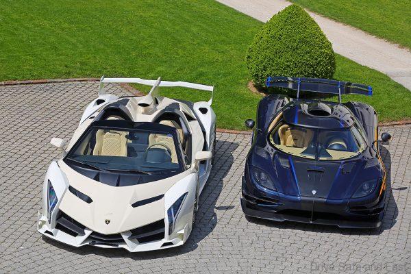 The collection of 25 exclusive cars is valued at over 12,000,000 euros and includes some special models such as the Lamborghini Veneno Roadster, the Koenigsegg One: 1, the McLaren P1, the Porsche Carrera GT, the Bugatti Veyron, the Ferrari Enzo and LaFerrari, the F12 TDF and Aston Martin One-77.
