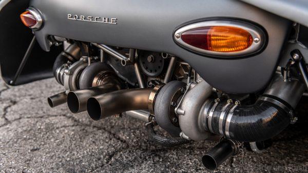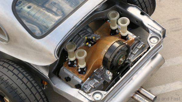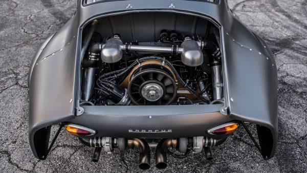 That’s right. The engine, just like the removable aluminium body, is a completely custom design. Designed and built in conjunction with Oregon based Rothsport Racing, the architecture of the motor is all 964, but a new case and crank was developed to allow the team to downsize the engine to four cylinders — it is a 356, after all — while two Garrett turbos make up for any loss in power.