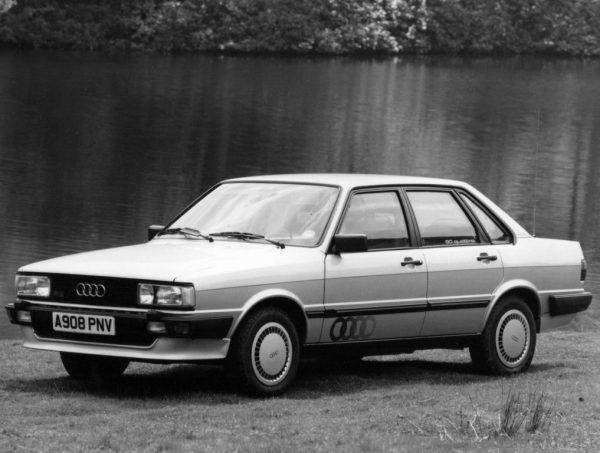 The front-wheel-drive Audi Coupe, which combined the five-cylinder engine and five-speed gearbox from the Audi 100 with the smaller platform of the Audi 80. This car, introduced in Europe in 1980, was the vehicle in which Audi’s quattro–lower case “q,” when referring to the four-wheel-drive system–would make its appearance.