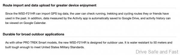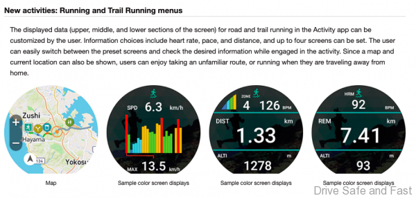The new WSD-F21HR offers a new heart rate monitor together with the wearable map technology, enabling wearers to continually check their physical condition, or navigate unfamiliar routes. Running and Trail Running menus have been added to the Activity app, which displays measurement data in real time.