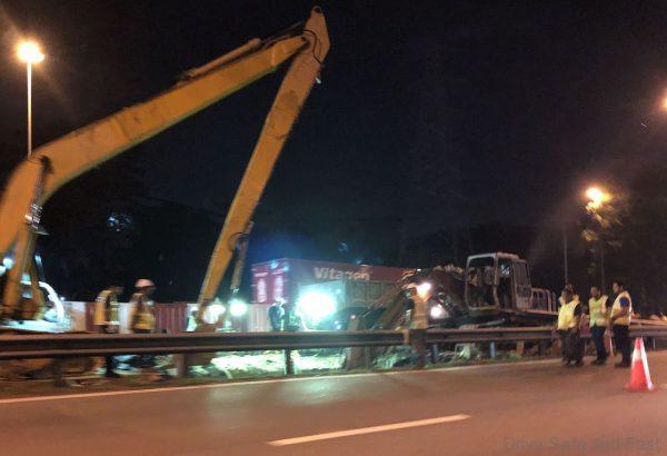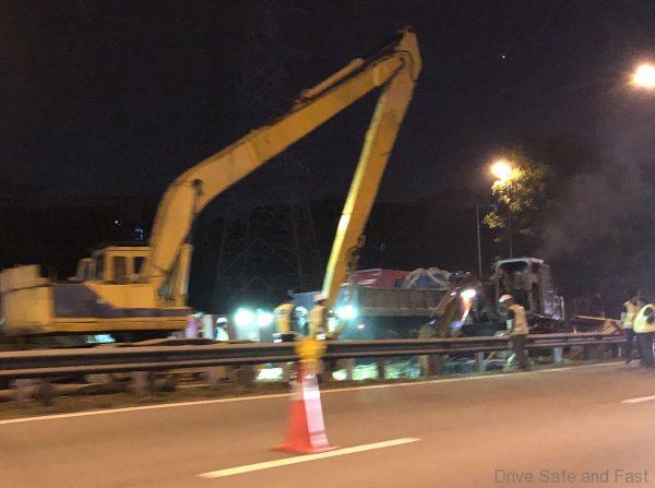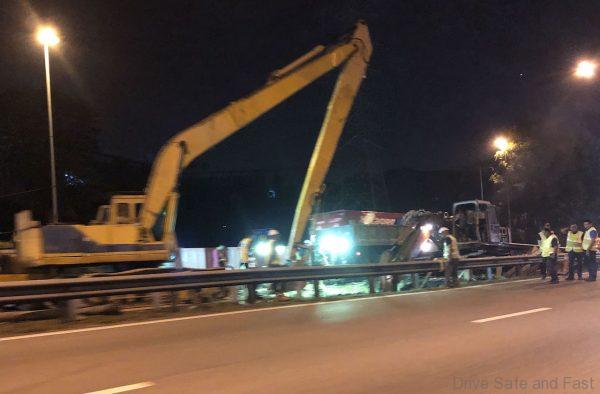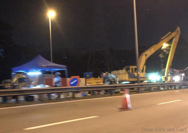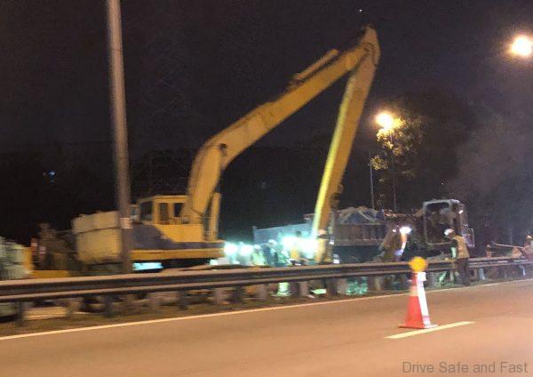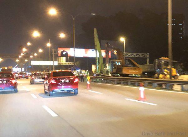 As we got closer to the Kuala Lumpur-Selangor border we could see cranes and heavy trucks on the other side with just 2 lanes in use as work continues thru the night to fix the burst water pipes.