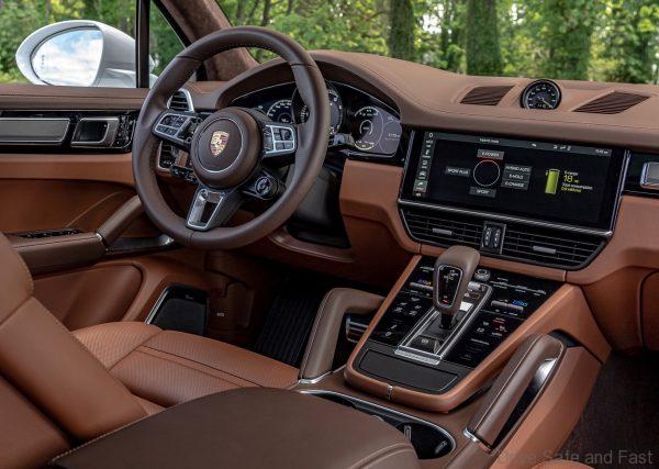 The new Cayenne E-Hybrid Coupé has a system output of 455 HP and a system torque of 516 lb.-ft. In conjunction with the standard Sport Chrono Package, it sprints from a standing start to 100 km/h in 5.1 seconds (5.0 seconds with the lightweight sports package) and has a top speed of 253 km/h.