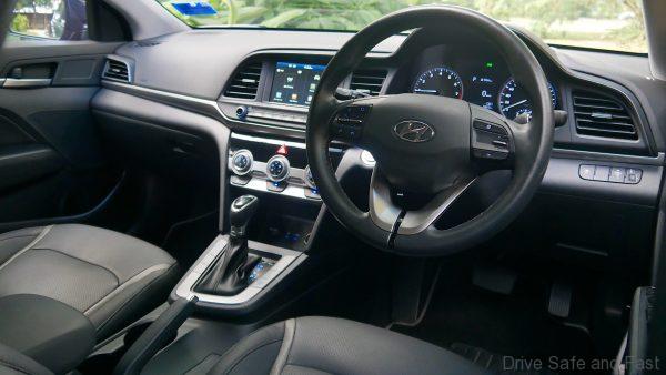 Inside, it’s a pretty bland affair. Much of what we saw in the pre-facelifted Elantra returns here.