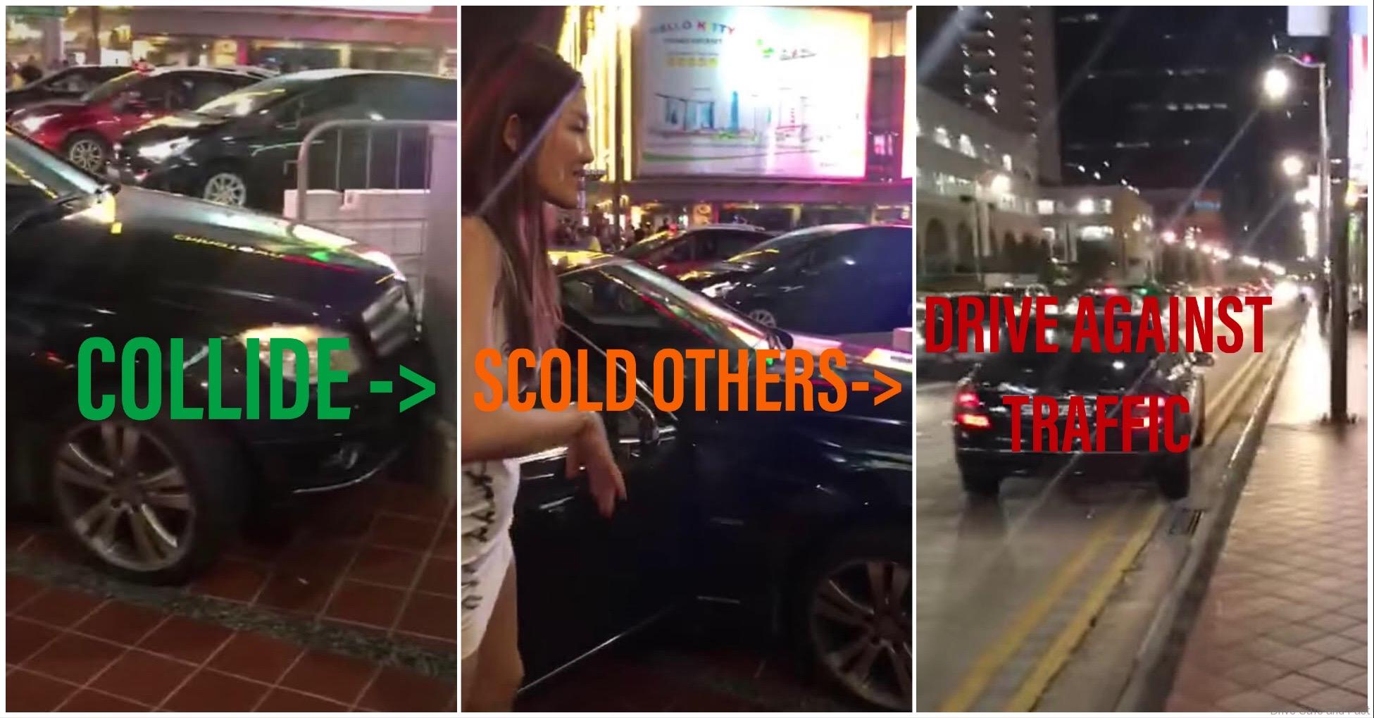 The clip later skips ahead and the woman has driven the car back onto the road but she’s facing the wrong way! The then starts driving at a pretty rapid pace against opposing traffic. The video cuts off before any collision is filmed. But we get a good look at the Singapore license plate, ‘SLA6055E’ and according to netizens, the road tax looks expired. Check out the video for yourself here: