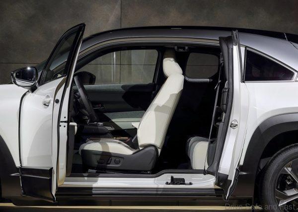 But the new name isn’t the only strange move by Mazda. They’ve also given their first electric vehicle suicide doors in the style of the RX-8. This gives you better access to the rear seats than a coupe, but the aperture is much smaller than regular doors. Mazda are calling these ‘freestyle doors’.
