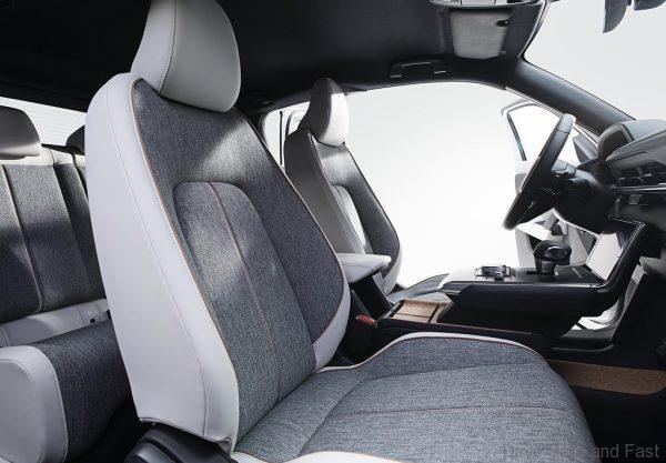 The interior consists of many recycled or otherwise environmentally-friendly sourced materials. The central tray, for instance, is made from cork that is harvested without chopping down trees. There are other fibrous materials used throughout the cabin that have a low impact on the environment and are sustainably sourced.