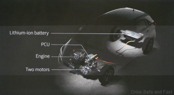 2-litre Atkinson Cycle i-VTEC engine, a lock up clutch assembly, 2 electric motors, no traditional gearbox