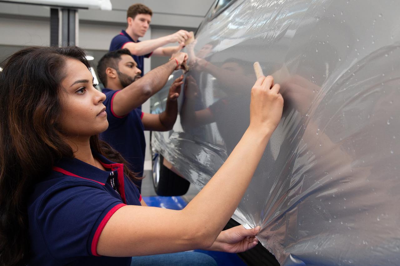 Jaguar Design is made up of designers from across the globe and from a range of industry backgrounds, including fashion, watch-making, sports and gaming. Being drawn from such different spheres of design helps the team deliver its ‘Jaguar’ interpretation of Britishness using contemporary materials and processes. Those processes utilise industry-leading technology, including custom-made clay modelling machines allowing 20 models to be worked on at once, virtual reality (VR) systems and an 11-metre 4K digital display wall known as ‘The Electric’. The floor area of the new Jaguar Design Studio measures over 12,000m2 – an increase of around 33% of the total previous studio spaces based in Whitley.