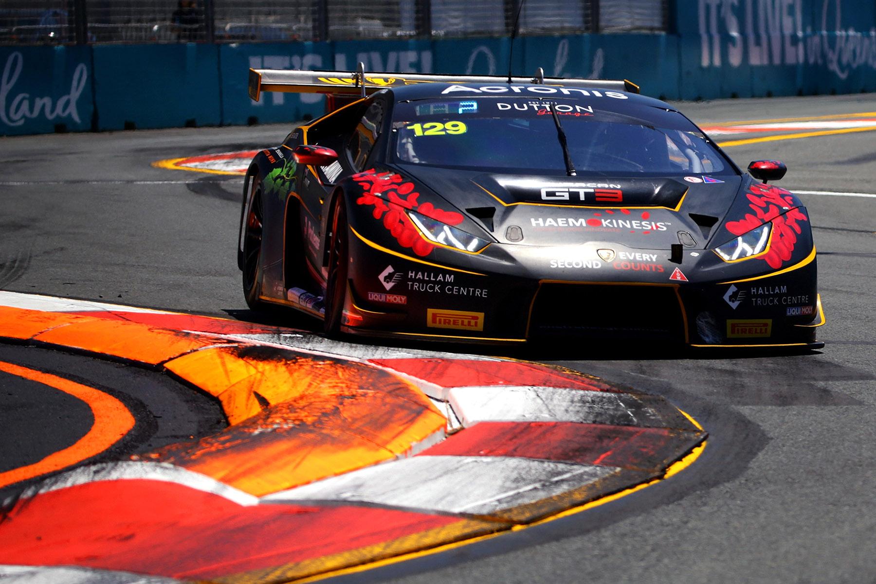 Gold Coast rookie Ryan Millier has claimed victory in the opening race of Australian GT’s return to the streets of Surfers Paradise, the Trofeo Motorsport Lamborghini Huracan driver turning in a flawless race to take over the lead after a setback for pole sitter and early race leader Fraser Ross during the compulsory pit stop.