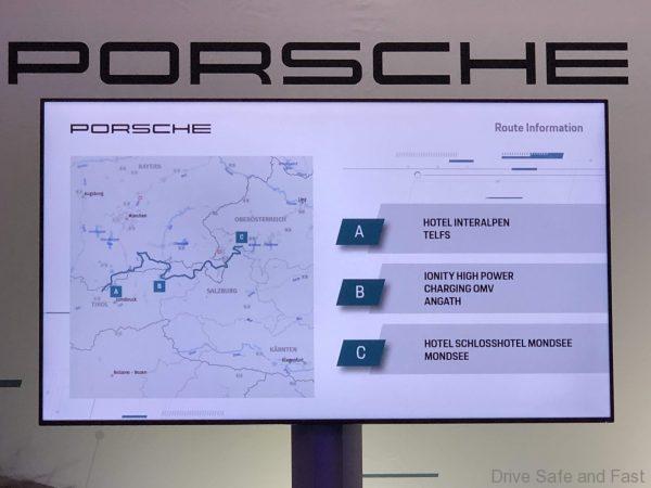 We start our Taycan experience at the Interalpen Hotel Tyrol up at the hills of Innsbruck. The Porsche Taycan drive team decided that all attending media from around the world will get a different leg of the drive route which starts in Oslo and ends in Stuttgart after 18 days. The route goes through 9 European countries and covers an estimated 6,440 kilometers. Along the route there are 150 charging stations and by end of the year some 60 charging stations will be added.