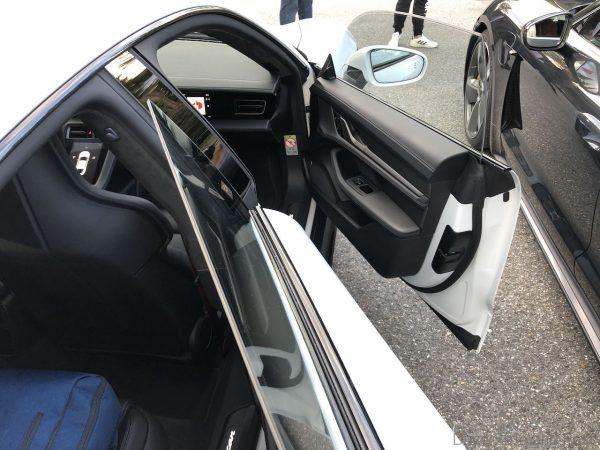 Getting into the Taycan is the same as getting into a 911. It sits low, the torso hugging seat is low and the roof height is low. Any 911 drivers will feel right at home. The view out is good and the dashboard is similar to the new Panamera and new 911.