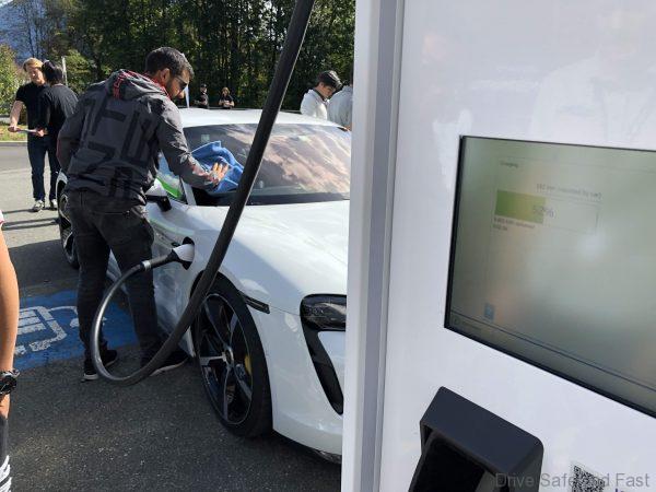 Into our 3rd bite of our well done Beef burger we were informed by the attending Porsche team that our Taycan was recharged and ready to go. We finished our burger and headed out.