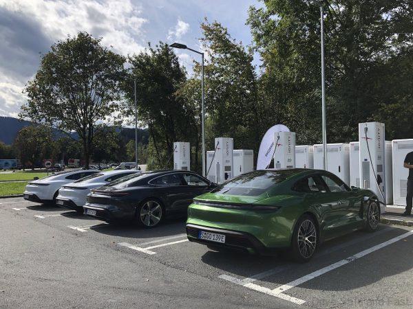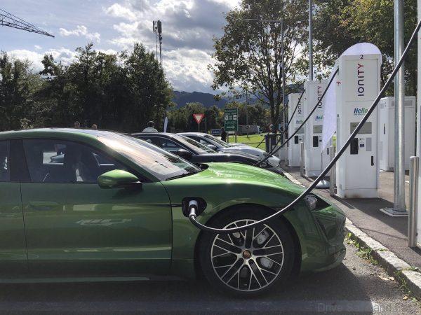 So, we start day 1 with a detailed briefing of the Taycan, its technology and our drive route. The Porsche team have given us a 370 kilometer drive route within the borders of Austria for the first day but it is an estimated 6-and-a-half-hour drive time. There is one charging station along the route and we were all given cars with just 80% of battery charge. Why? Well, they wanted us to experience charging the Taycan at the IONITY High Power Charging station at the town of Angath.