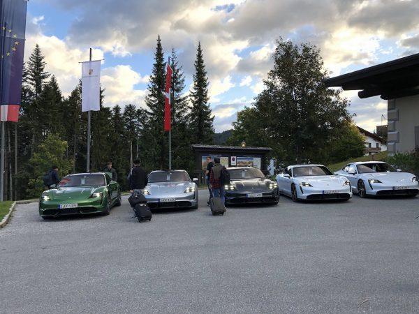 So, we start day 1 with a detailed briefing of the Taycan, its technology and our drive route. The Porsche team have given us a 370 kilometer drive route within the borders of Austria for the first day but it is an estimated 6-and-a-half-hour drive time. There is one charging station along the route and we were all given cars with just 80% of battery charge. Why? Well, they wanted us to experience charging the Taycan at the IONITY High Power Charging station at the town of Angath.