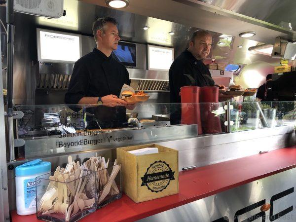 Into our 3rd bite of our well done Beef burger we were informed by the attending Porsche team that our Taycan was recharged and ready to go. We finished our burger and headed out.