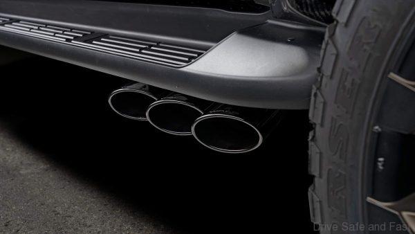 Here the Toyota Hilux is completely transformed into a menacing beast. Everything from the vents in the front fenders to the rear wing make the Black Bison look like a truck that wants to play with the Raptor. The aero kit consists of a new front bumper with signature integrated fog lamps, bold side skirts, a rear apron with integrated diffuser and new quad-exhaust system. Not to mention the wide 20 inch wheels that complete the murdered out look of the black on black beast.