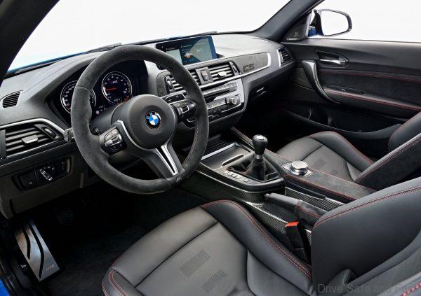 The same sprint takes 4.2 seconds with the six-speed manual gearbox. The top speed of the special-edition model, which comes complete with the M Driver’s Package, is an electronically governed 280 km/h (174 mph). Manual models achieve combined fuel consumption figures of 10.4 – 10.2 l/100 km [27.2 – 27.7 mpg imp) and combined CO2 emissions of 238 – 233 g/km. Cars fitted with the M DCT transmission burn just 9.6 – 9.4 l/100 km [29.4 – 30.1 mpg imp) on the combined cycle with CO2 emissions of 219 – 214 g/km. The petrol particulate filter fitted in the BMW M2 CS in the relevant EU countries further reduces particulate emissions.