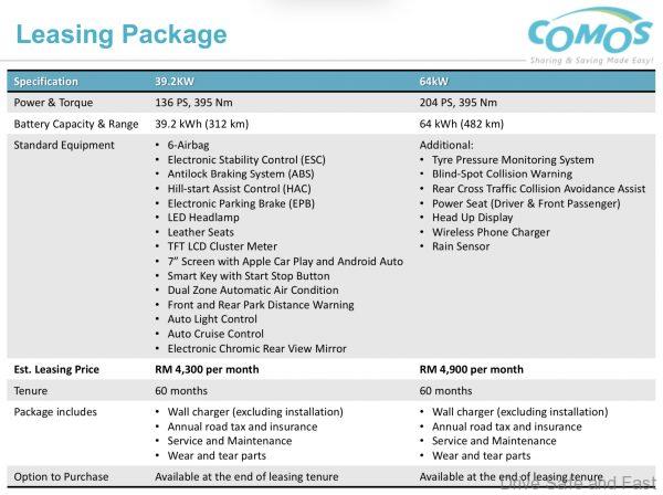 According to the documents we received, COMOS Malaysia would service the leasing programme which is expected to be 5 years long. Two specifications are being brought in: either the 39.2kW or 64kW versions.