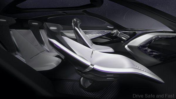 The layout of the electric powertrain and incorporation of Level 4 autonomous driving systems has enabled the creation of a spacious and flexible cabin unlike any other vehicle on roads. The two front seats are created out of flexible materials and can offer an upright ‘driving’ position, or a reclined ‘rest’ position, similar to the flexibility afforded to first-class airline passengers. With the activation of the Futuron’s autonomous driving features, the two front seats recline as the steering wheel retracts. The ‘zero-gravity’ seating position this creates helps to reduce fatigue on long journeys.