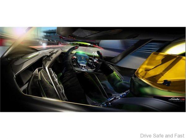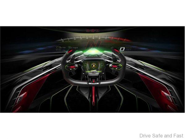 The Lambo V12 Vision GT features a very exciting design produced by Lamborghini Centro Stile in Sant’Agata Bolognese. It is a single seater, which in its virtual form uses the powertrain from the Lamborghini Sián FKP 37. The design builds on historic Lamborghini design DNA, expanding the potential of the design language in a very futuristic way. Focused on the single center line, the iconic silhouette of all Lamborghini models, it emphasizes a single seater layout conceived for a racing game where a passenger is not needed. The concept car’s powerful overall design is dedicated to sophisticated aerodynamics. A large wing housing a significant Y-taillight dominates the rear. All elements are designed as high performance surfaces, integrating design and aerodynamics. The main body is disconnected from the fenders, and the hexagon-inspired theme in the side windows is inspired by the Lamborghini Marzal from 1968. The Lambo V12 Vision GT uses the typical Lamborghini Y-signature for both front lights and rear lights. A visionary concept requires an interior design ahead of its time. The driver enters the cabin like a jetfighter pilot, from the front of the car. The main driving controls are located within the futuristic steering wheel and all driver information is projected virtually in front of the driver.