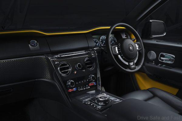 Reflecting the marque’s Bespoke philosophy, Black Badge Cullinan benefits from a near-infinitely configurable interior colour palette. Black Badge clients often use interior space as a stage to create dramatic high contrast colourways, so for Cullinan Rolls-Royce’s Colour and Trim designers created a bold new leather colour, Forge Yellow, to offer as part of the brand’s curated collection. As with all leather colours, this can be commissioned for the motor car’s Viewing Suite or incorporated into the design of a highly Bespoke Recreation Module tailored to the client’s exacting specification.