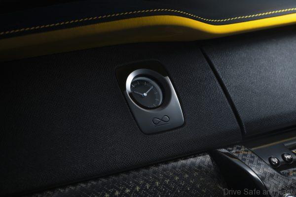 A final touch completes the interior seating: the Infinity lemniscate motif is embroidered into the fold-down rear arm-rest as an elegant reminder of the power contained within. This simple but potent symbol is also incorporated in the illuminated treadplates and engraved on the clock face, itself framed by brushed and darkened steel case bearing the name ‘Cullinan’. Red-tipped clock hands and instrument display needles also serve as a discreet reminder of the motor car’s dynamic prowess.