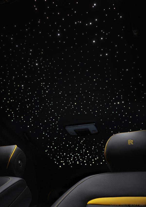 Starlight Headliner has joined historical Rolls-Royce iconography such as the Spirit of Ecstasy, Pantheon Grille and ‘Double R’ monogram. Its presence in Black Badge Cullinan intensifies the cabin’s ambience by casting a low light over the lavish leather seats. Presented in fine Black leather, handwoven with 1344 fibre optic lights, it is a true reflection of the sky at night and incorporates eight brilliant white shooting stars that dart at random predominantly over the front occupants, subtly acknowledging the motor car’s owner-driver appeal.
