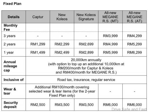 The Fixed Plan is a more structured plan, available for short periods of one, two or three years, with a monthly usage rate that covers road tax, insurance and regular servicing costs starting from only RM3,999.