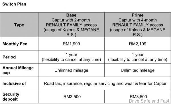 The Switch Plan comes with no mileage caps, no cancellation penalties and fees are inclusive of insurance, road tax and regular servicing costs. Wear and tear for the Captur is also included under this plan.