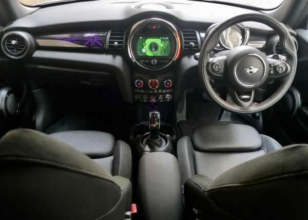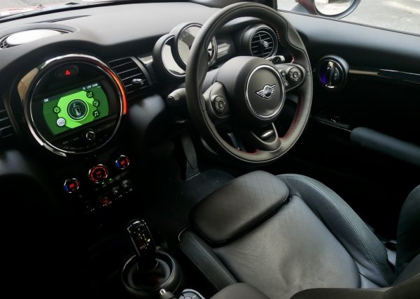 And while a more heavily equipped JCW version of the 3-door MINI exists, this one’s still dressed up well enough. It still gets a JCW steering wheel, leather seats and an illuminated Cooper S logo etched onto side sill. The 17″ wheels look large are proportionate, as does the 6.5″ infotainment system.