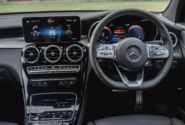 Inside the new GLC Coupé features intelligent comfort functions, an exciting new operating system and digital displays. With the MBUX and Mercedes me connect, the GLC 300 Coupé has a new and intuitive form of control – using either the intuitive touch control buttons or simple voice output. The cockpit is also made easier with the fully-digital cockpit. It consists of a 10.25-inch media display with touch functionality and 12.3-inch instrument cluster, including navigation display. The inside ismade more contemporary than ever, with the leather upholstery and the light longitudinal-grain aluminium trim.