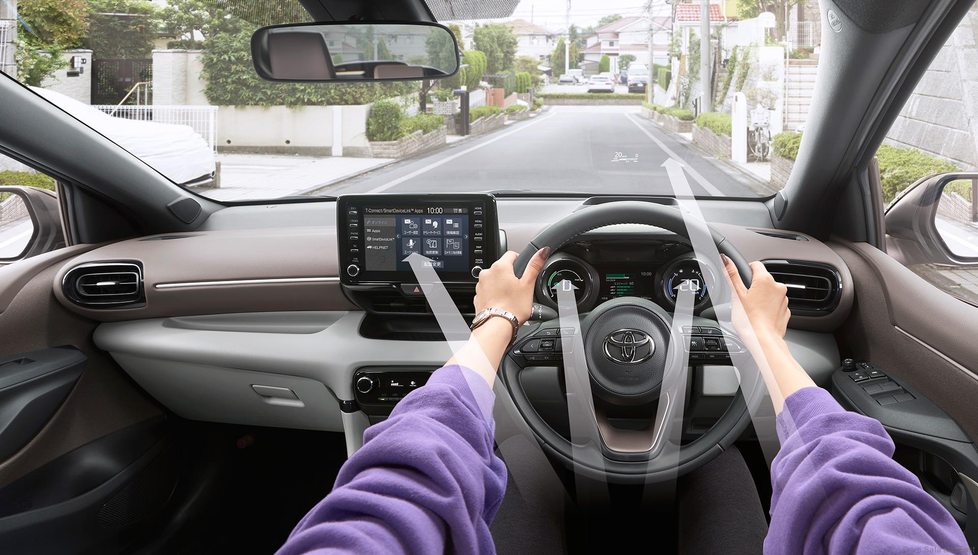 The new Yaris is expected to become a highly popular compact car, and for this reason it is equipped with a wide range of advanced and convenient functions: it is the first Toyota car to be equipped with Toyota Teammate Advanced Park (including Panoramic View Monitor functions)*6, Toyota’s advanced parking support system; it features the latest Toyota Safety Sense*7, which is now capable of detecting oncoming cars when turning right at an intersection, and of detecting pedestrians crossing the street when turning right or left; and it comes with Turn Tilt Seats*8, which make it easier to enter and exit the vehicle. Display Audio, which can be connected to smartphones, is also fitted to all grades as standard.