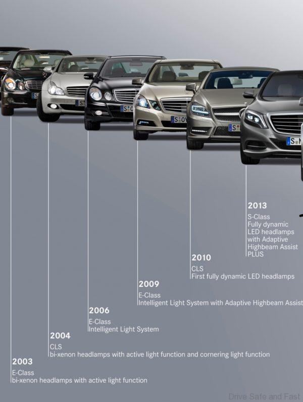 2010: The first dynamic LED headlamps debut in the CLS (C219). It came with the ILS with five light functions. Adaptive Highbeam Assist, was also featured.