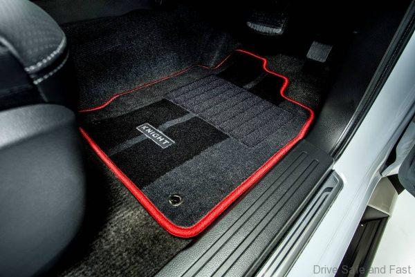Moving into the cabin, the Triton Knight comes with scuff plates and exclusive Red-stitching carpet matswith Knight embroidery.