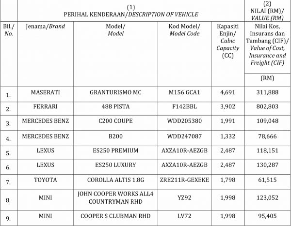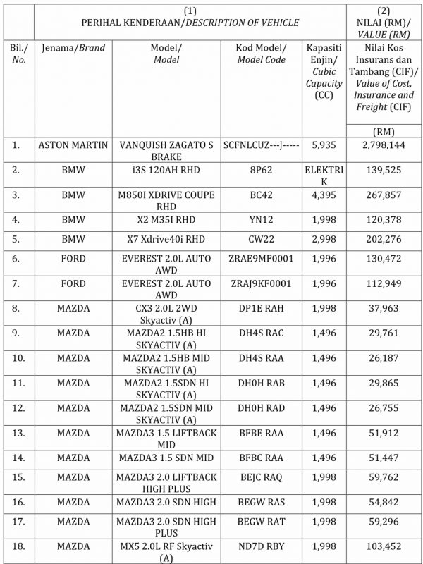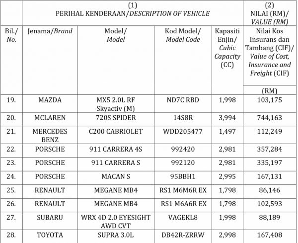 In a series of Malaysian Federal Government gazettes regarding the value of CIF on fully-imported cars, we may have found a nugget of information. While the other vehicles listed appear to be familiar, a specific Subaru model that had not yet been launched was listed near the end of the list.