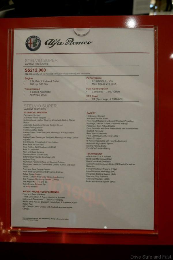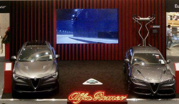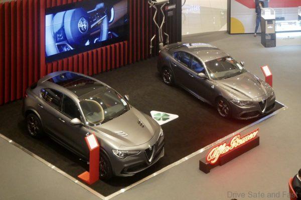 The brand were displaying both the Giulia 4-door sedan and Stelvio SUV in their ‘Super’, ‘Veloce’ and ‘Quadrifoglio’ variants. We’re not going to go into too much detail, but the Super and Veloce get 2-litre turbo inline-4 engines with different power and torque outputs while the Quadrifoglio models feature 2.9-litre V6 biturbo engines. They all get 8-speed conventional automatic transmissions that send power to the rear wheels. Click on the brochures below for more information about each variant.
