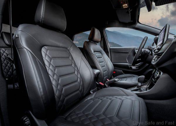 Puma Titanium features unique Pearl Grey machined 18-inch alloy wheels, and chrome elements for the grille, side skirts and fog lamps. The rear diffuser and skid plate are finished in metallic grey, and the window surrounds in high gloss black. Inside, Ford Puma Titanium is offered with a leather-effect steering wheel, wood-effect appliques for the cluster bezel and instrument panel, and distinctive fabric inserts for the door interiors.