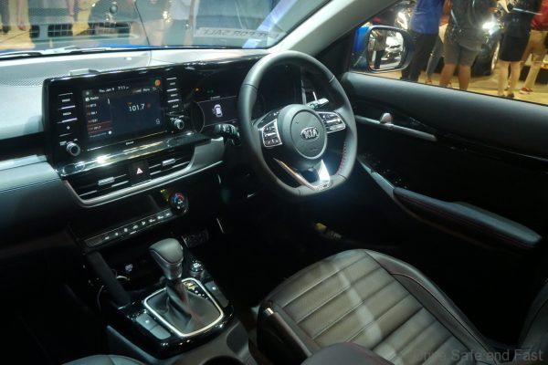 The interior of the Seltos is designed with high-quality, futuristic materials. Aimed at youthful, tech-savvy buyers, the cabin is characterized by broad, sweeping shapes and highly technical details. Equipped with a range of technologies to maximize convenience, connectivity and ease of use, the bold design of the cabin incorporates a 10.25-inch touchscreen infotainment system and Sound Mood Lighting. The ergonomics of the cabin allow the driver to sit comfortably with a commanding view, helping to focus on driving and naturally reduce fatigue. Within the lounge-like and spacious interior, the Seltos also houses an available 8.0-inch Head-Up Display system which unobtrusively projects relevant driving information on to a small glass panel behind the steering wheel – such as turn-by-turn navigation directions and vehicle speed information. The car is also available with a premium eight speaker Bose audio system delivering clear, lifelike sound to all Seltos passengers.