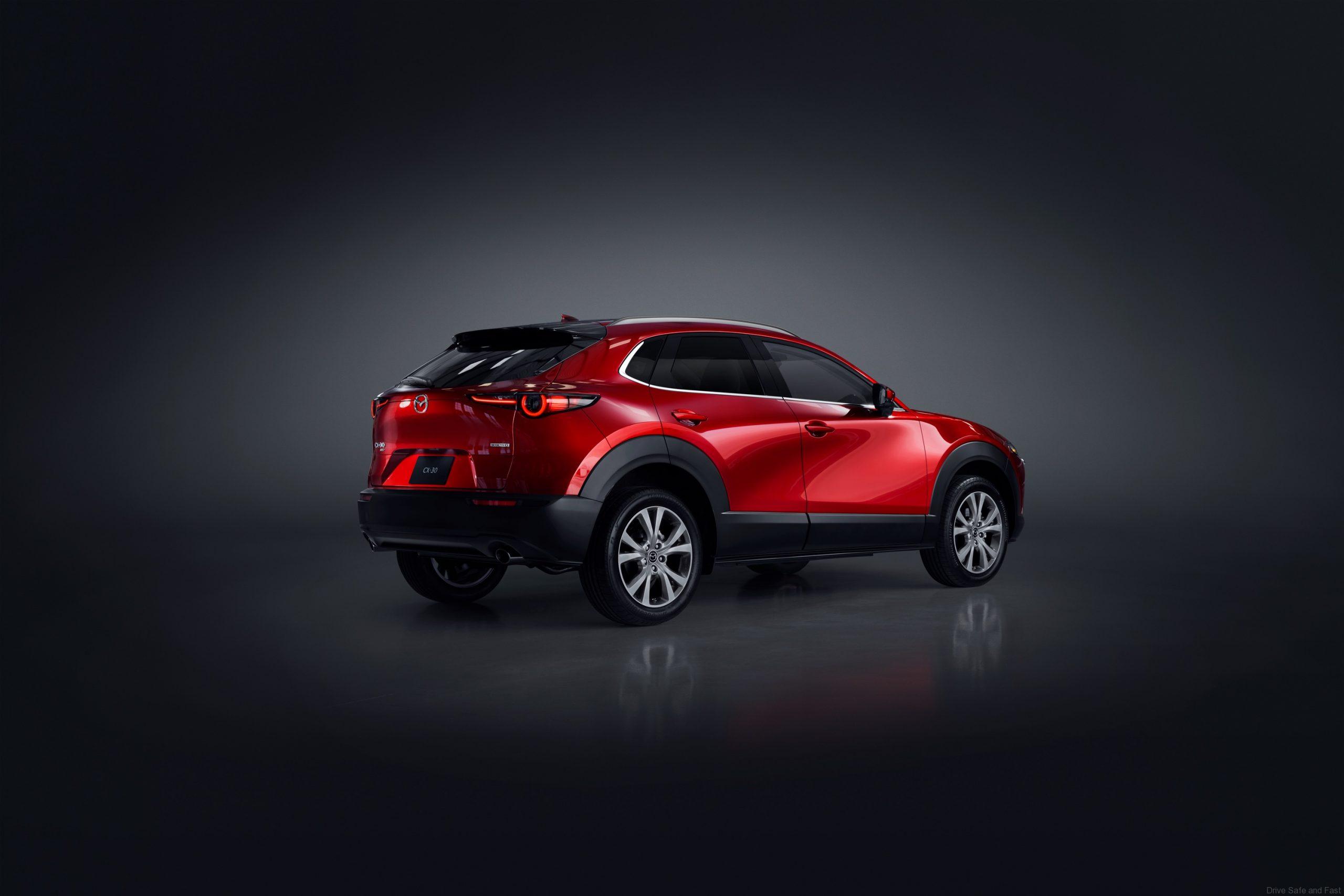Based on the ‘Sleek and Bold’ design concept, the CX-30 proportions combine the toughness of an SUV with a supple, flowing beauty that transcends the category and the body surfaces provide rich, unlimited impressions that change from moment to moment.