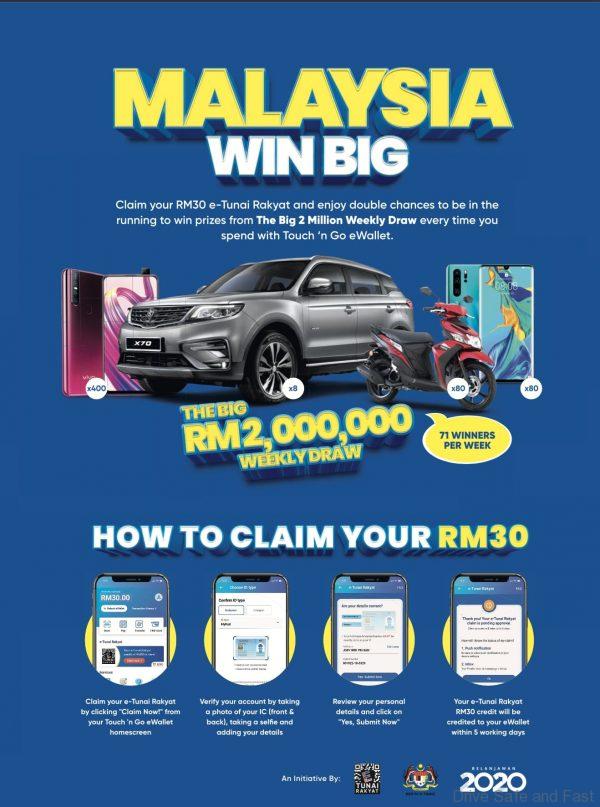 Meanwhile, ‘The ‘Big 2 Million Weekly Draw’ is still running concurrently with e-Tunai Rakyat from 15 January 2020 to 10 March 2020. Malaysians who have claimed their RM30 e-Tunai Rakyat with Touch ‘n Go eWallet will automatically be eligible for the weekly draw. Users who have claimed their e-Tunai Rakyat and proceed to make a transaction using the Touch ‘n Go eWallet can earn two entries per transaction.