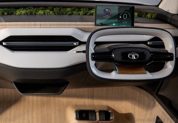 The interior design is built on creating a spacious and stress free environment. A space and a rear passenger layout that emphasizes roominess, comfort and safety creating an inviting atmosphere. It offers a unique and pioneering approach to mobility with a signature lounge layout for the rear passengers and the ability of the front passenger to rotate and share in this space. There they will enjoy the large panoramic windows and skylight. The dashboard forgoes the race to add more screens and instead offers a natural wooden tech shelf with the ability for the customer to bring their own device. This adds to the digital detox of the Tata Sierra experience creating an atmosphere where the users interact with each other and enjoy the vista.