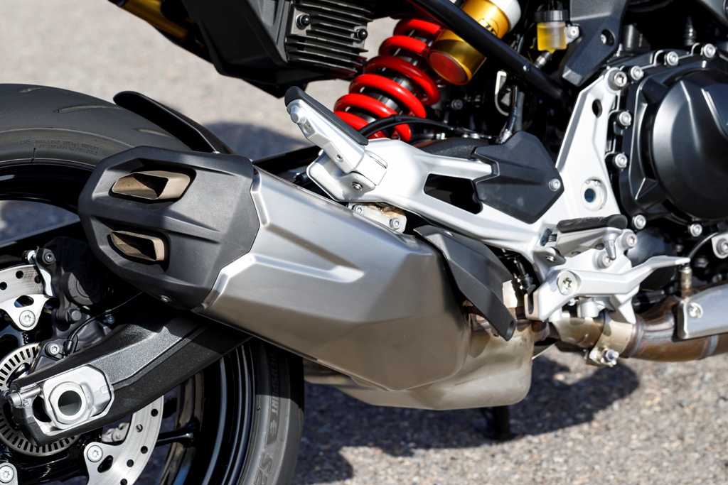 The F 900 R arrives in Style Sport with a particularly sporty seating position. It is available in San Marino Blue metallic and Style Sport in Hockenheim Silver metallic/Racing Red, along with a passenger seat cover.