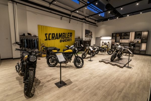 The showroom incorporates Ducati’s latest brand Corporate Identity (CI) with several experiential sections including separate areas for Ducati Apparel Tech and Ducati Accessories, as well as a dedicated Scrambler Camp, complete with its own Apparel Tech and Accessories areas.