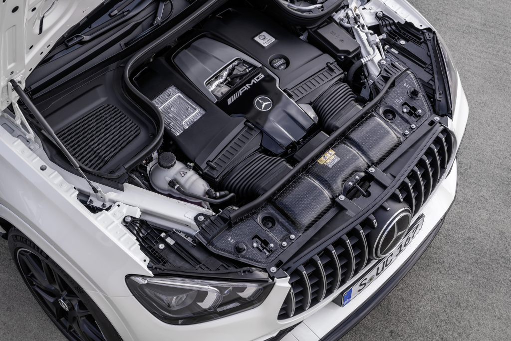 The 4.0-litre V8 biturbo engine in the new GLE63 Coupé is fitted in both output variants (420 kW/571 hp and 450 kW/612 hp) with an integrated EQ Boost starter-alternator. It combines a starter motor and an alternator in a single, powerful electric motor compactly integrated between the engine and the transmission. The additional 16 kW (22 hp) of output plus 250 Nm of torque which can be called upon temporarily not only enable more spontaneous moving-off characteristics. This is because moreover, this innovative component supplies the 48-volt on-board electrical system, is used as a power generator and also performs hybrid functions. These include boost, recuperate, load point shift and the virtually imperceptible restarting of the engine with the start/stop function.