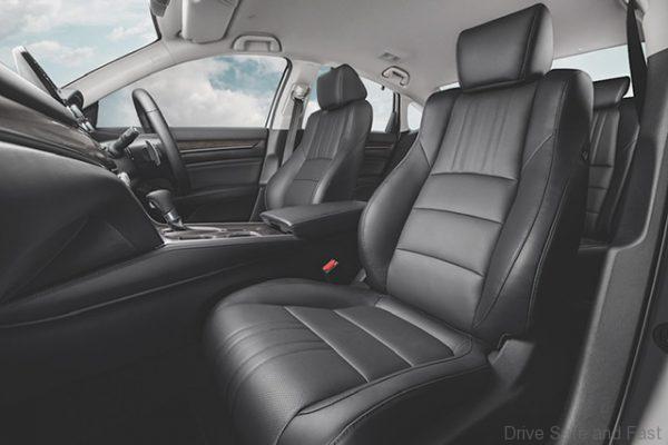 The interior styling of the All-New Accord exemplifies the “Man-Maximum, Machine-Minimum” design philosophy. In terms of dimensions, the wheelbase of the All-New Accord increased by 55mm; the rear legroom is now roomier by an additional 48mm, providing more comfort for passengers. Its interior finishing sets a class-leading standard by providing a perfect touch of classiness while the leather application on seats further adds elegance and sophistication.