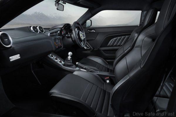 The GT410’s door trims now feature integrated arm rests and storage bins for greater comfort and practicality. Exterior paint colour choices have been revised to include new options, including some historic shades from Lotus’ past.